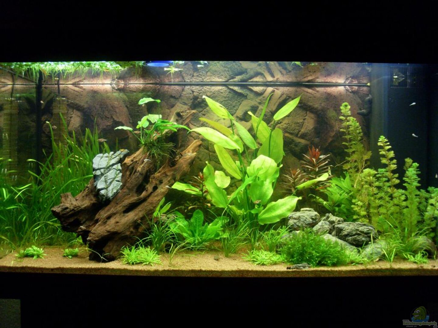 Juwel Aquarium Rio 300 mit Unterschrank ========== > Ersteinrichtung am 01.05.2011 > Dekor: warme Buche > Fotorückwand (Stein optik) > High-Lite Einsatzleuchten 120 cm, T5 Röhren 4 x 54 Watt > BL Cristal Profi e1500 Hochleistungs-Au??enfilter > Im Innenfiltergehäuse befindet sich die Technik (Schläuche, Heizung) da ein Au??enfilter benutzt wird > JBL ProFlora m602 CO2-Düngeanlage mit Nachtabschaltung