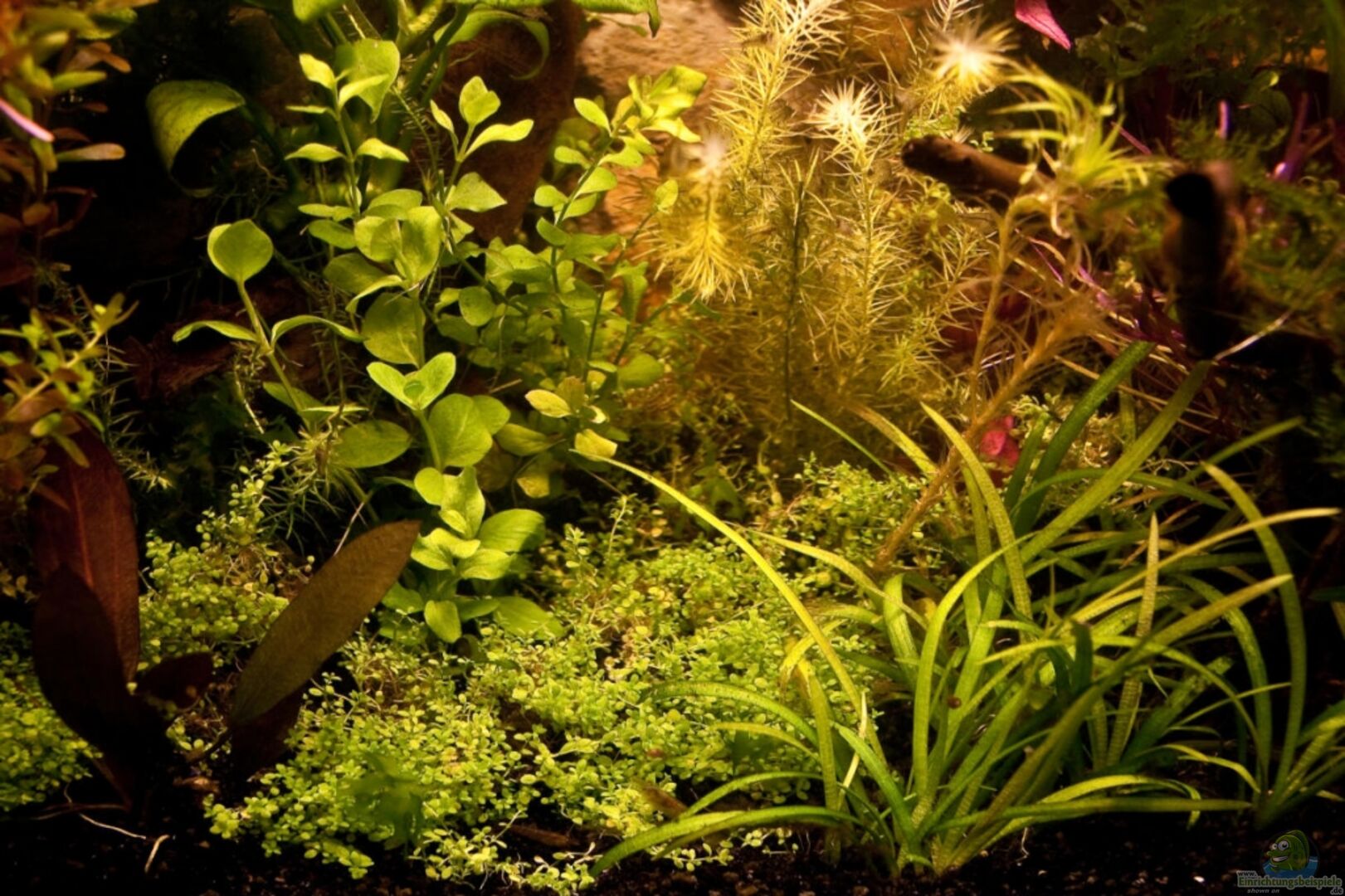 Es handelt sich hier um ein Standrdbecken mit gewölbter Front, gefertigt aus 4 mm Glas, verklebt mit schwarzem Silikon. In das Becken habe ich eine 3D-Rückwand in Stein/Wurzel-Optik eingeklebt, deren Tiefe im Becken beträgt 2 - 8 cm. Im oberen Bereich der Rückwand wurde eine kleine Pumpe eingeklebt, da der Raum hinter der Wand als Filter genutzt wird. Deshalb wurde die Rückwand einseitig mit Silikon verklebt, steht unten auf 2 Silikonstützen und ist oben an einer Stelle links fixiert. Links [...]