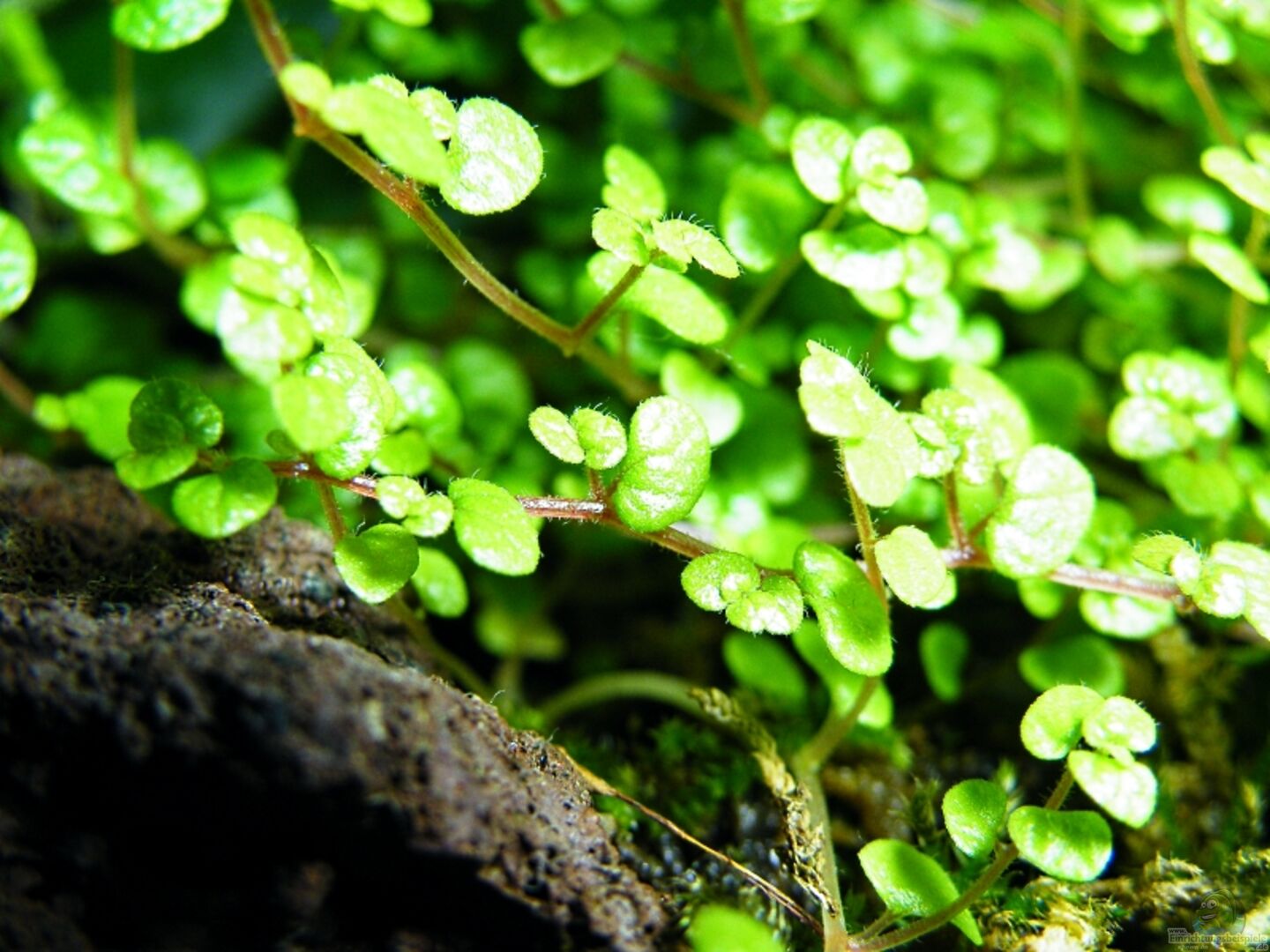 Unter Wasser: Javamoos Rundblättrige Rotala - Rotala Rotundifolia Grüne Rotala - Rotala sp. `Green` ??ber Wasser: Bubikopf Javamoos - emers gezogen kleine Orchidee und zwei Tillandsien