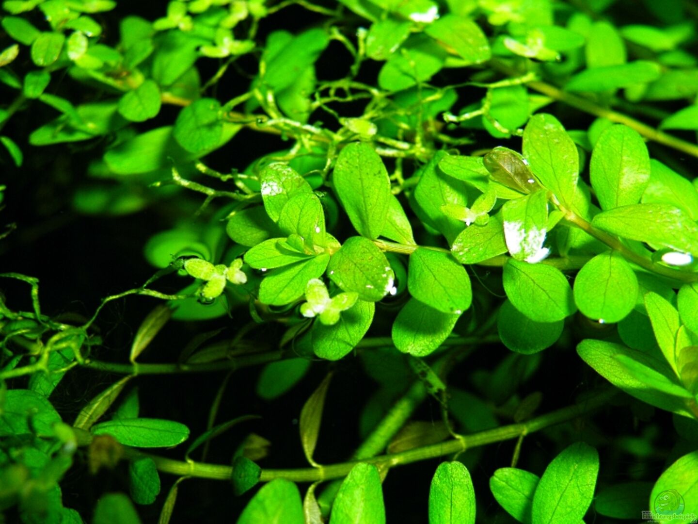 Unter Wasser: Javamoos Rundblättrige Rotala - Rotala Rotundifolia Grüne Rotala - Rotala sp. `Green` ??ber Wasser: Bubikopf Javamoos - emers gezogen kleine Orchidee und zwei Tillandsien