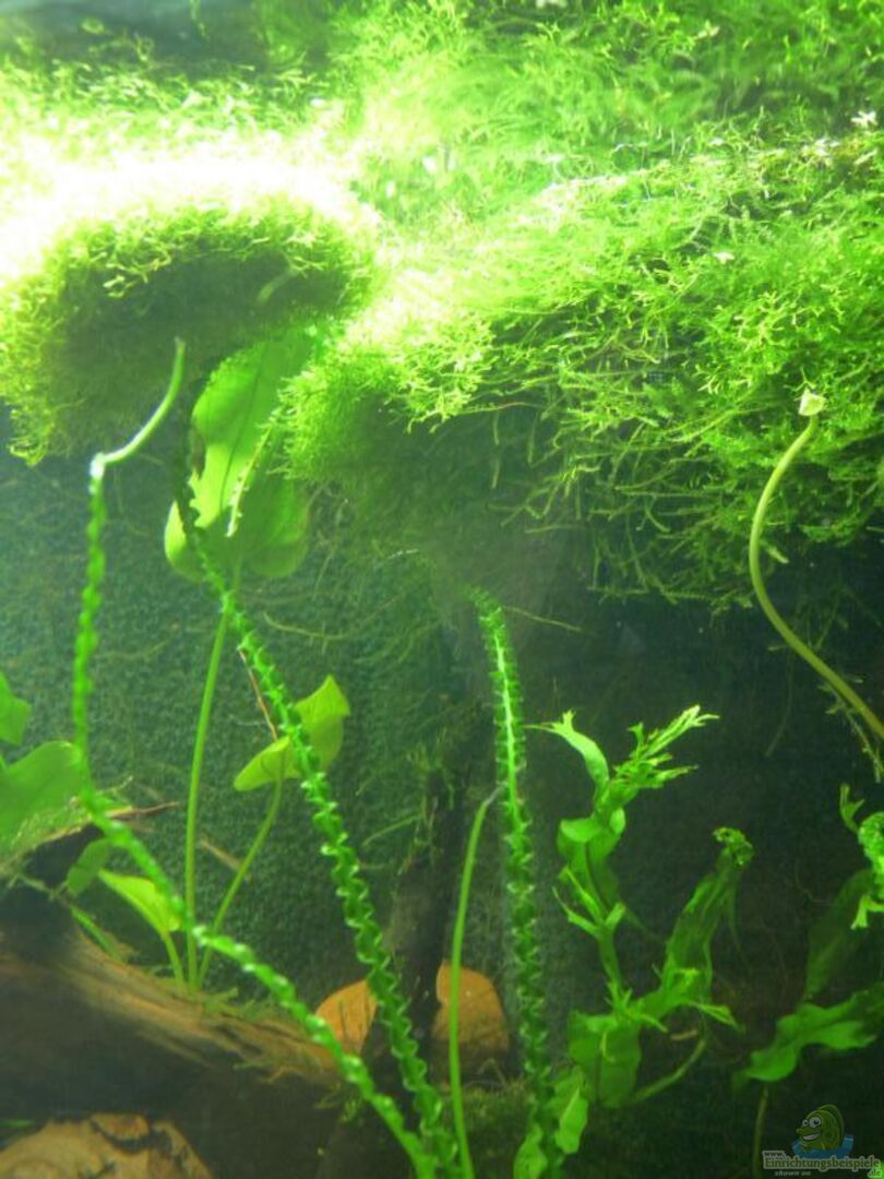 Sagittaria Platyphylla (Breitblättriges Pfeilkraut), Froschlöffel, Lilaeopsis Novae-Zelandiae (Neuseelandgras), Vesicularia dubyana (Javamoos), Microsorum Pteropus `Windelov` (kleiner Javafarn), Riccia Fluitans (Teichlebermoos), Lemna Minor, Monosolenium Tenerum (Tropisches Beckenmoos), Hydrocotyle Verticillata (Amerikanischer Wassernabel), Crinum Natans (Flutende Hakenlilie), Cladophora Aegagropila (Mooskugeln)