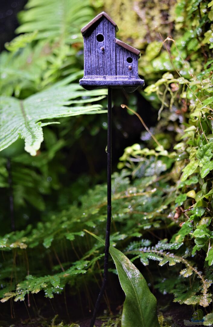 2 grosse Mangrovenwurzeln über die Wasser fliesst. Die rechte Wand besteht aus Xaxim.