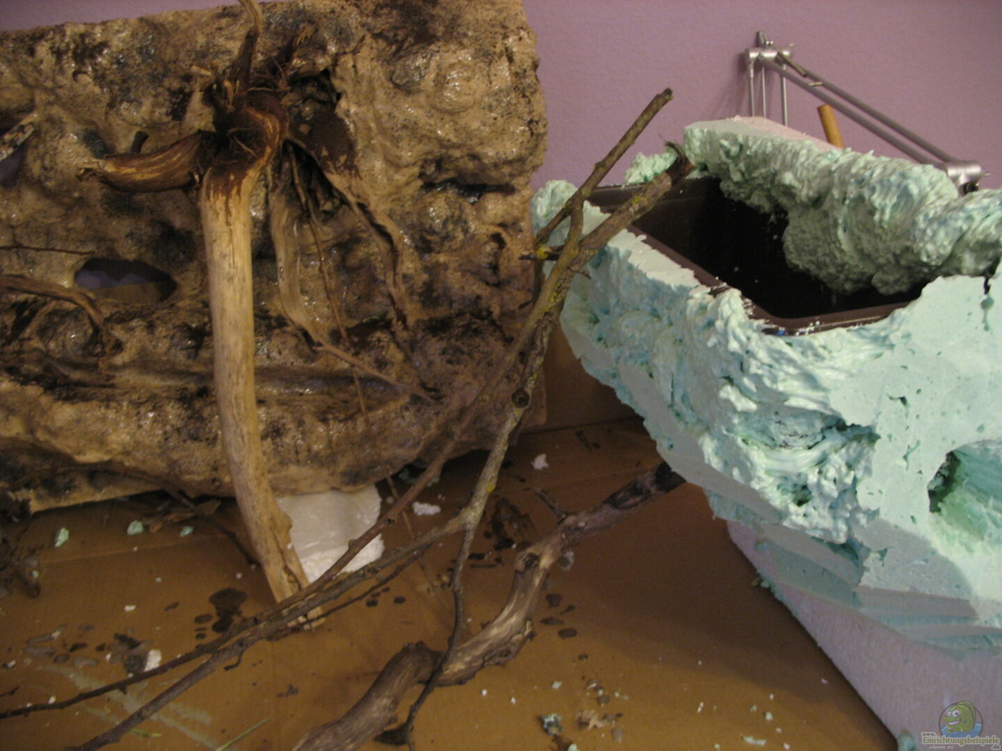 Rückwandmodule in beiger Farbe/Lehmoptik, div. Steine, Wurzeln etc. Markante ??ste: 1 gro??er abgestorbener trockener massiger Ast eines Apfelbaumes ohne Rinde, Durchmesser an der dicksten Stelle gute 18 cm. 1 gro??er trockener abgestorbener Ast einer Pappel, hier der Durchmesser ca. bei 6 cm. Ansonsten kleinere ??ste und Zweige von Eiche, Pappel, Buche Markante Steine: 1 gro??er flacher Naturfindling ca. 35 x 25 x 12 cm. Ansonsten grö??ere und kleinere Kiesel, Lavabrocken etc. Bau [...]