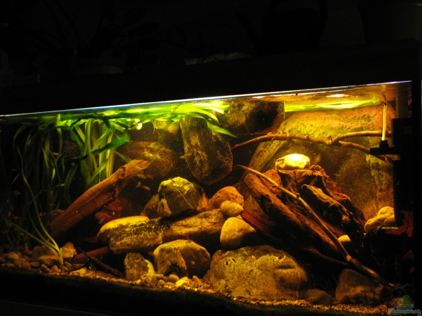 Das Becken läuft seit Juli 2006, das aktuelle Layout allerdings erst seit ca. 1, 5 Jahren Beckendaten: Standardbecken, Floatglas, stossverklebt mit schwarzem Silikon. Unterbau aus Y-Tong Steinen. Als Auflage eine 27 mm Spanplatte. Darauf liegt als Druckausgleich eine passend zugeschnittene Campingmatte. Das ganze Gebilde wurde anschlie??end verkleidet mit Sperrholz Pappel und mit wei??er Rauhfasertapete tapeziert. Auf der linken Seite des Beckens steht eine Säule aus Spanplatten, die ebenfalls [...]