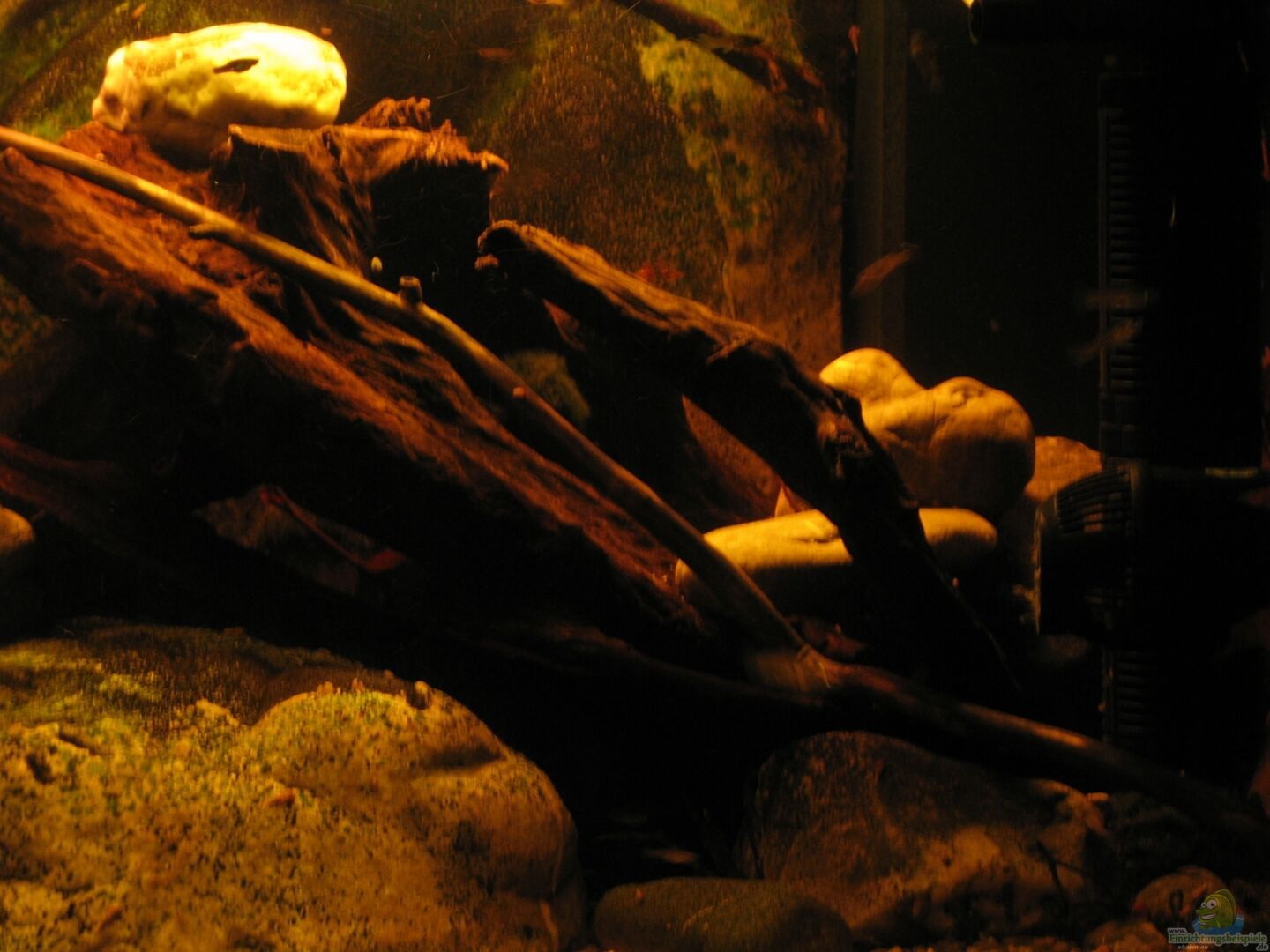 Das Becken läuft seit Juli 2006, das aktuelle Layout allerdings erst seit ca. 1, 5 Jahren Beckendaten: Standardbecken, Floatglas, stossverklebt mit schwarzem Silikon. Unterbau aus Y-Tong Steinen. Als Auflage eine 27 mm Spanplatte. Darauf liegt als Druckausgleich eine passend zugeschnittene Campingmatte. Das ganze Gebilde wurde anschlie??end verkleidet mit Sperrholz Pappel und mit wei??er Rauhfasertapete tapeziert. Auf der linken Seite des Beckens steht eine Säule aus Spanplatten, die ebenfalls [...]