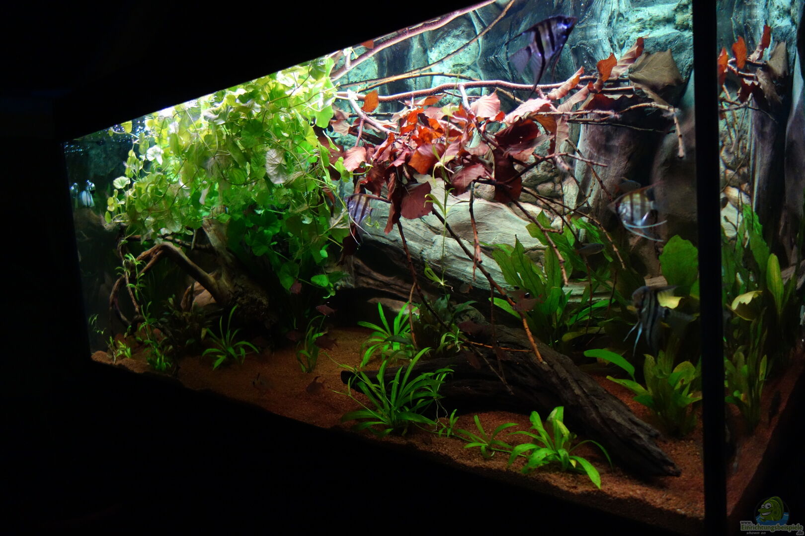 Es handelt sich hierbei um ein JUWEL Rio 240, Der Bioflow Innenfilter wurde entfernt und durch einen Eheim Aussenfilter ersetzt. Die Hinter- und rechte Seitenscheibe wurde mit einer schwarzen Folie abgeklebt. Nachdem das Aquarium ca 1 Jahr stabil gelaufen ist, wurde dies vor kurzem komplett umgebaut und befindet sich nun wieder im Aufbau.