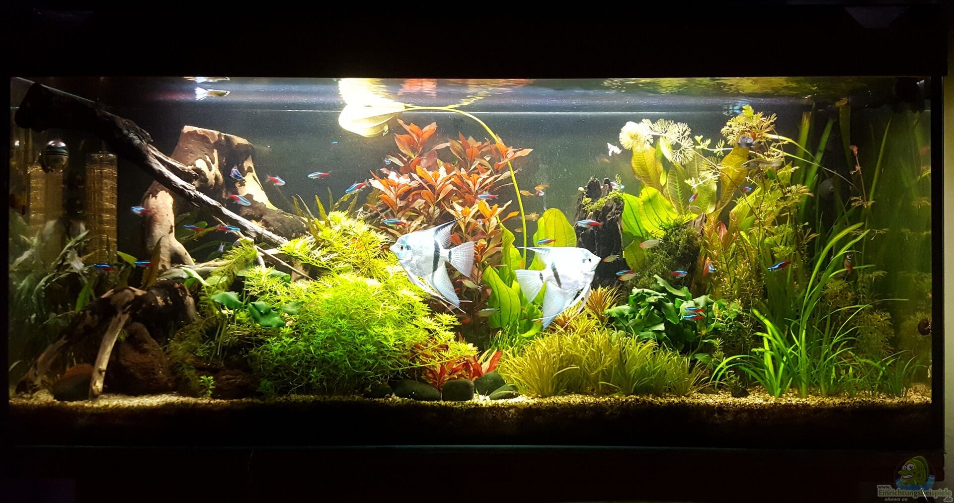 Das Becken ist ein Floatglas Becken mit Sto??verklebung, hatte diese Jahrelang offen, nach dem Umzug habe ich mir dann eine Juwel Abdeckung besorgt, mit T8 Röhren ausgestattet. Habe diese später durch LED ersetzt Die Rückwand habe ich mit schwarzer Posterfolie abgedeckt. Da da Becken leider schon auf seinen Platz stand und schon eingerichtet, konnte ich diese leider nur schwer befestigen.