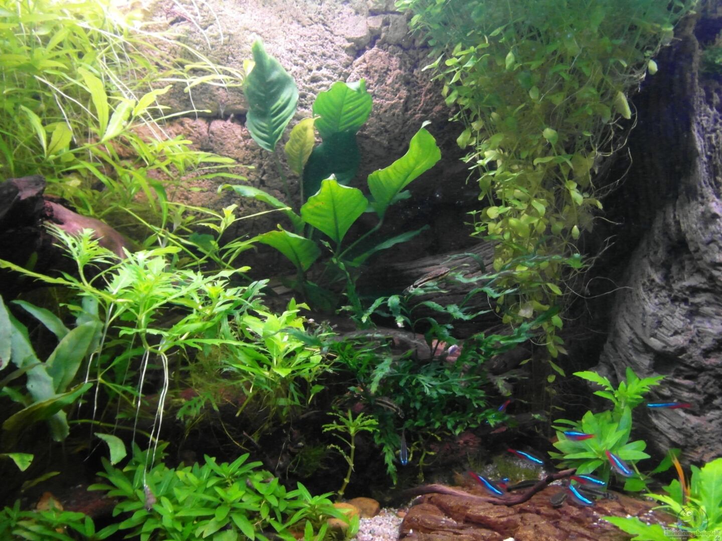 Hinterschwimm, kriech- und krabbelbare Rückwand, welche an den unteren und seitlichen Kanten nur punktuell mit JBL Haru verklebt wurde. Das Wasser kann somit u.a. durch die entstandenen "Verklebelücken" zirkulieren. Darüber hinaus ist der hintere Bereich der Rückwand durch einen 7 x 5 cm gro??en Durchgang zugänglich, welcher sich im linken unteren Bereich befindet. Auch hier gelangt Wasser hinter die Rückwand um einem Stillstand des Wassers entgegen zu wirken.