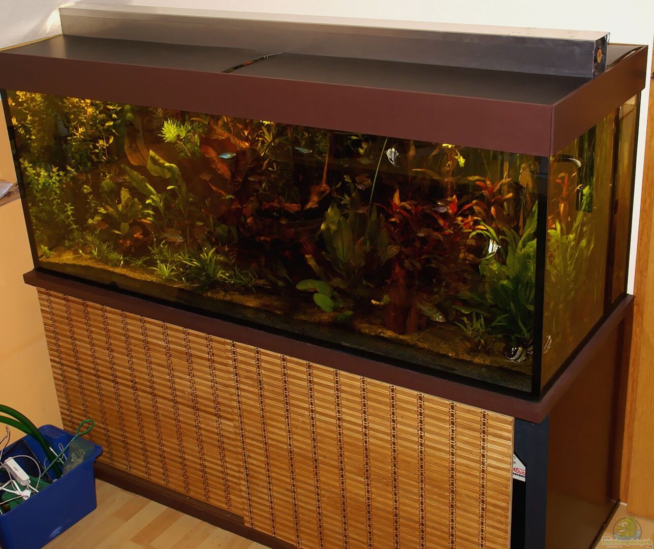 Rechteckbecken, 12mm Floatglas, sto??verklebt. Ablaufschacht hinten rechts mit 3 Bohrungen. Separate Kammer im Schacht mit Bodenabsaugung. Selbstbau-Unterschrank. Selbstbau-Abdeckung.