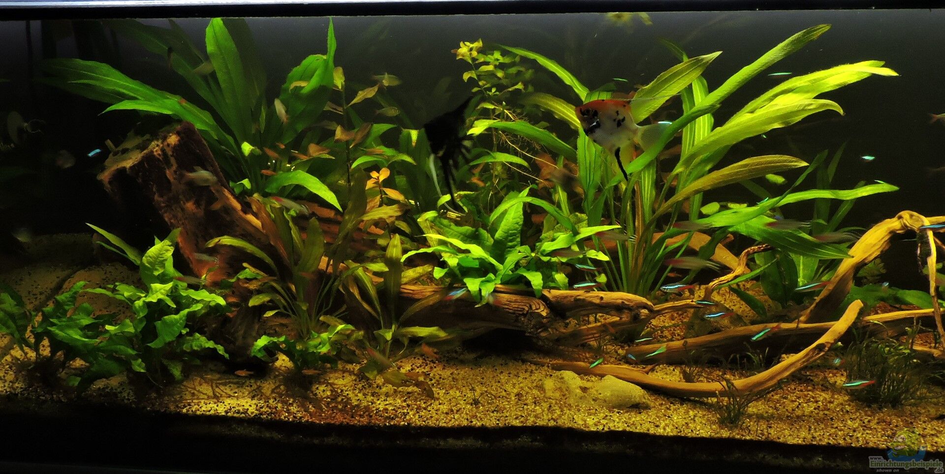 Bio CO2 Anlage mit 8 L Druckbehälter und eine Druckanzeige. Becken nicht komplett beleuchtet.