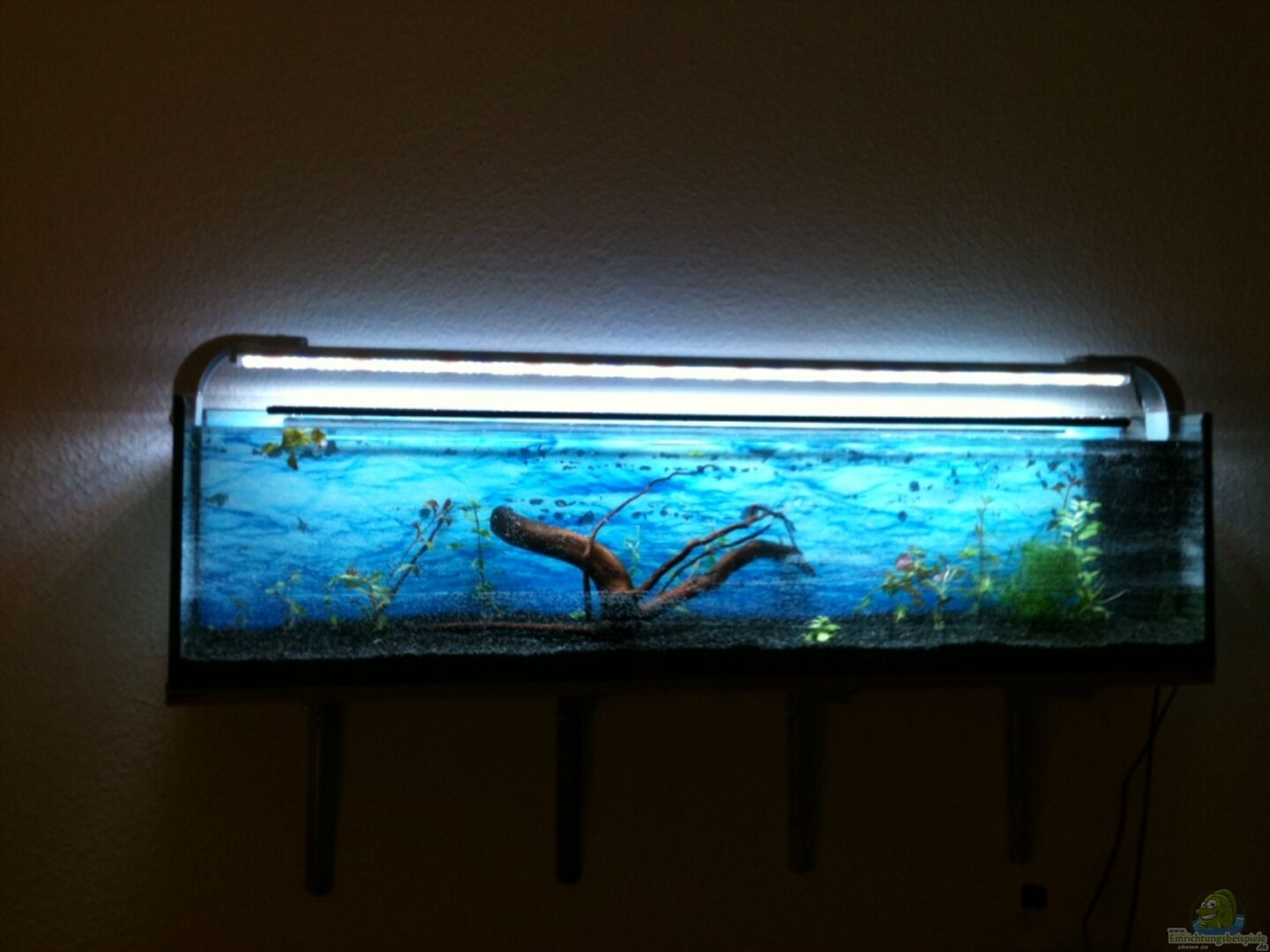 Wandaquarium: steht auf einer Multiplexplatte. Wurde mit Schwerlastkonsolen und Schwerlastdübel und -schrauben gesichert