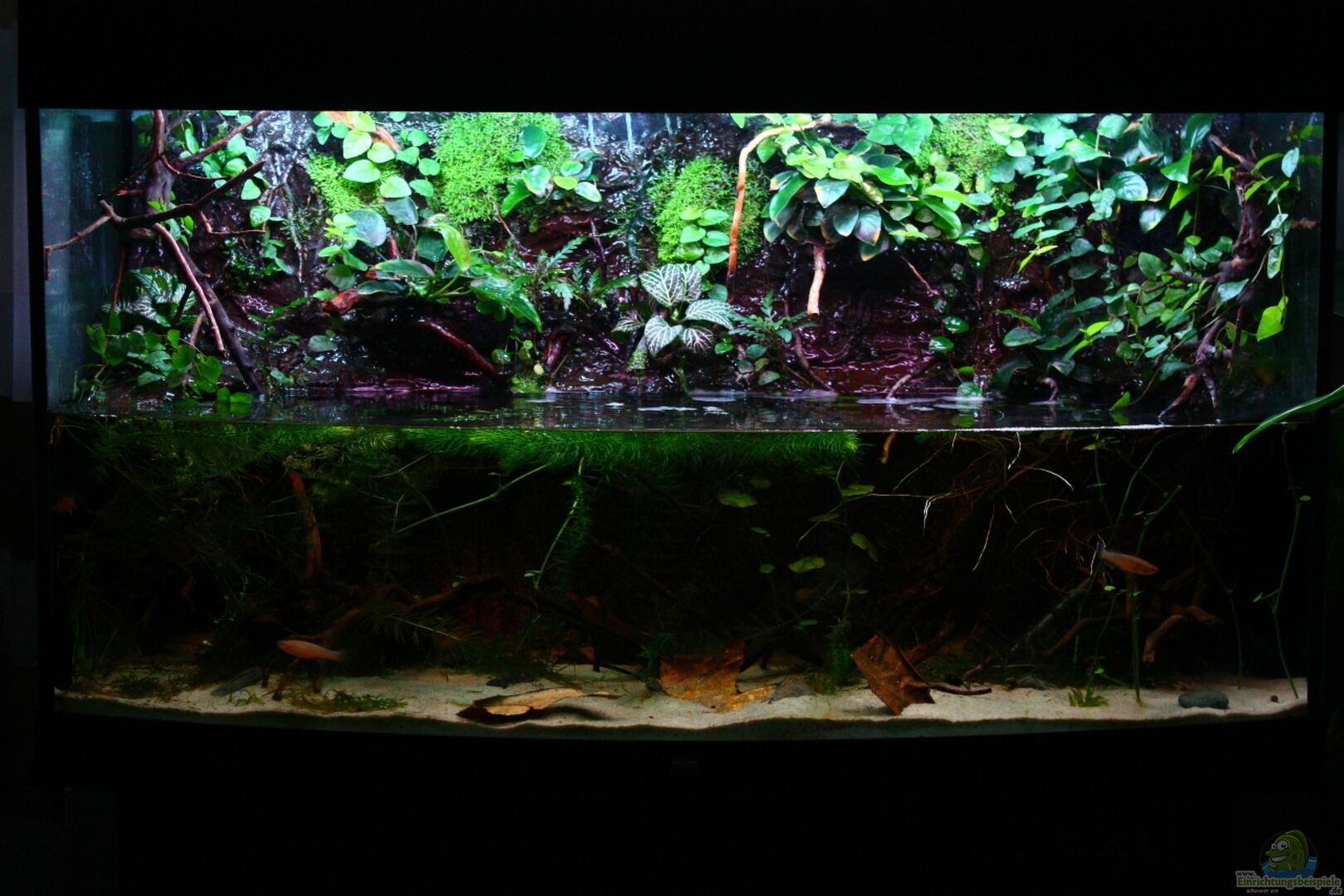 Das Becken ist ein Juwel Vision 180. Es handelt sich hierbei um ein Paludarium, welches bis etwas über die Hälfte befüllt ist