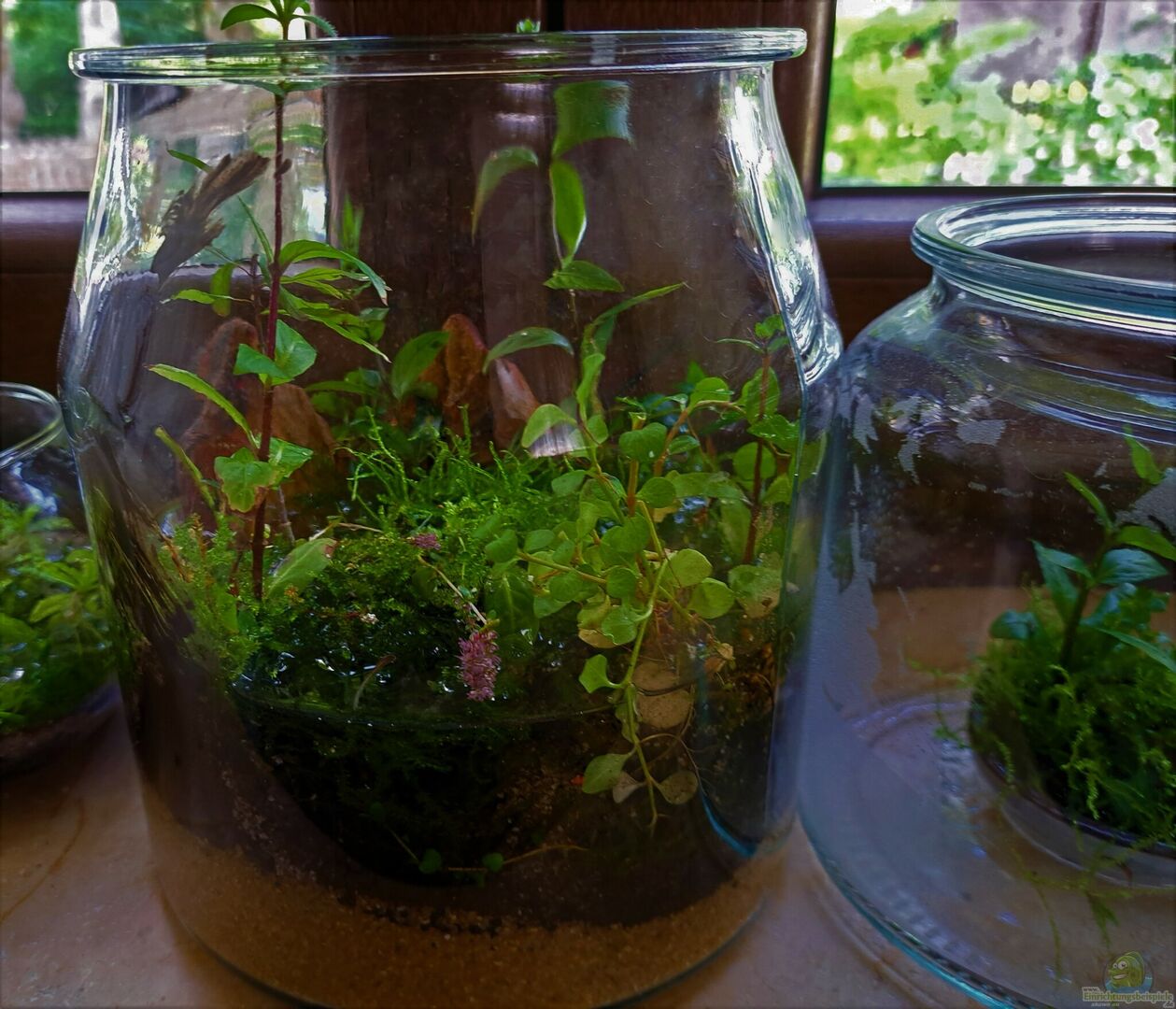 Das angegebene Volumen bezieht sich auf das Glasbecken in dem zur Zeit die meisten der Gläser untergebracht sind. Das Hauptbild zeigt einen Teil von zur Zeit Gefäßen. 1 Liter Fassungsvermögen musste ich vom System her mindestens angeben. In jedem der Gefäße befinden sich real maximal 2 Zentimeter hoch Wasser. Es ist mein erster Versuch mit "richtigen" Wabi Kusas. Im Moment befinde ich mich absolut im Experimentierstadium. Ich hätte nie gedacht, das Pflanzen so spannend sein [...]