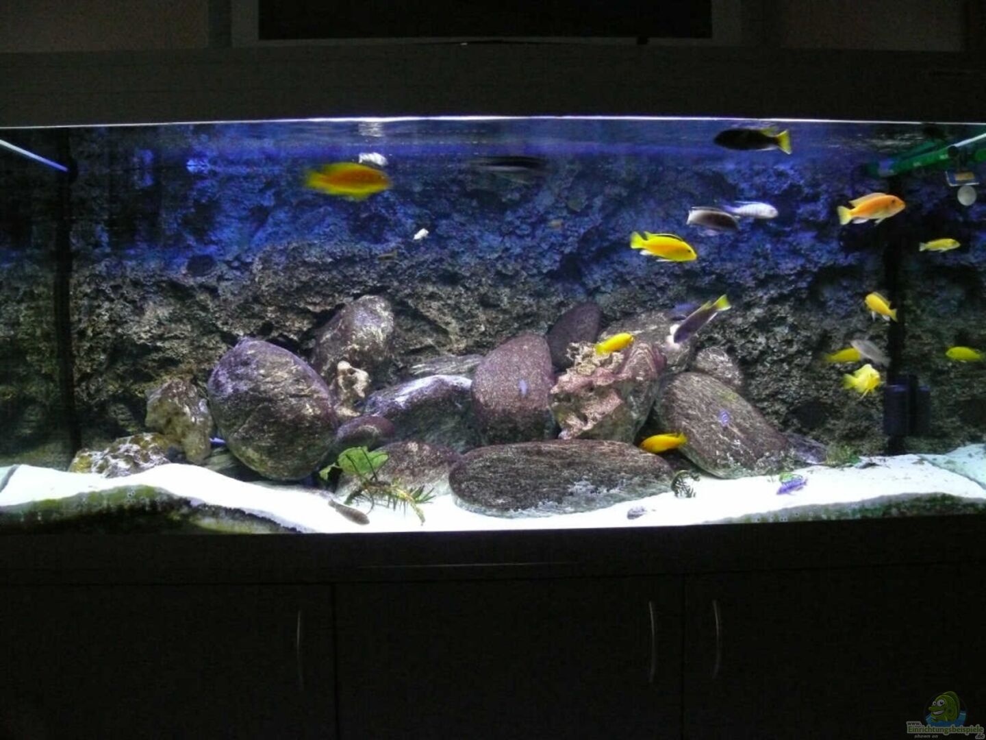 Sonderanfertigung von Amazonas Aquarium aus Reutlingen. Abdeckung von Seaqualux aus Aluminium. Becken ist in 12mm Glas und Stossverklebt mit Sicherheitsnaht und Mittelsteg. Frontscheibe aus Weissglas. Unterschrank ist vom Schreiner angefertigt in Silber, mit ABS-Kanten und Kiesblende.