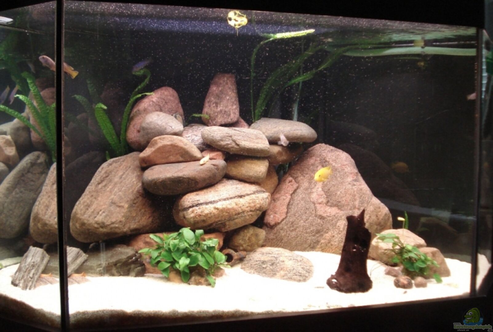 In die hintere Ecke eingeklebte Scheiben zur Unterteilung in Filterkammer und Pumpenkammer sowie ein Kabelschacht zum Unterschrank. Dadurch ist die Beckenbreite auf etwa 60 cm Schwimmraumtiefe begrenzt. Die Beckengrö??e für Fisch, Deko und Co. liegt etwa bei 300 Liter.