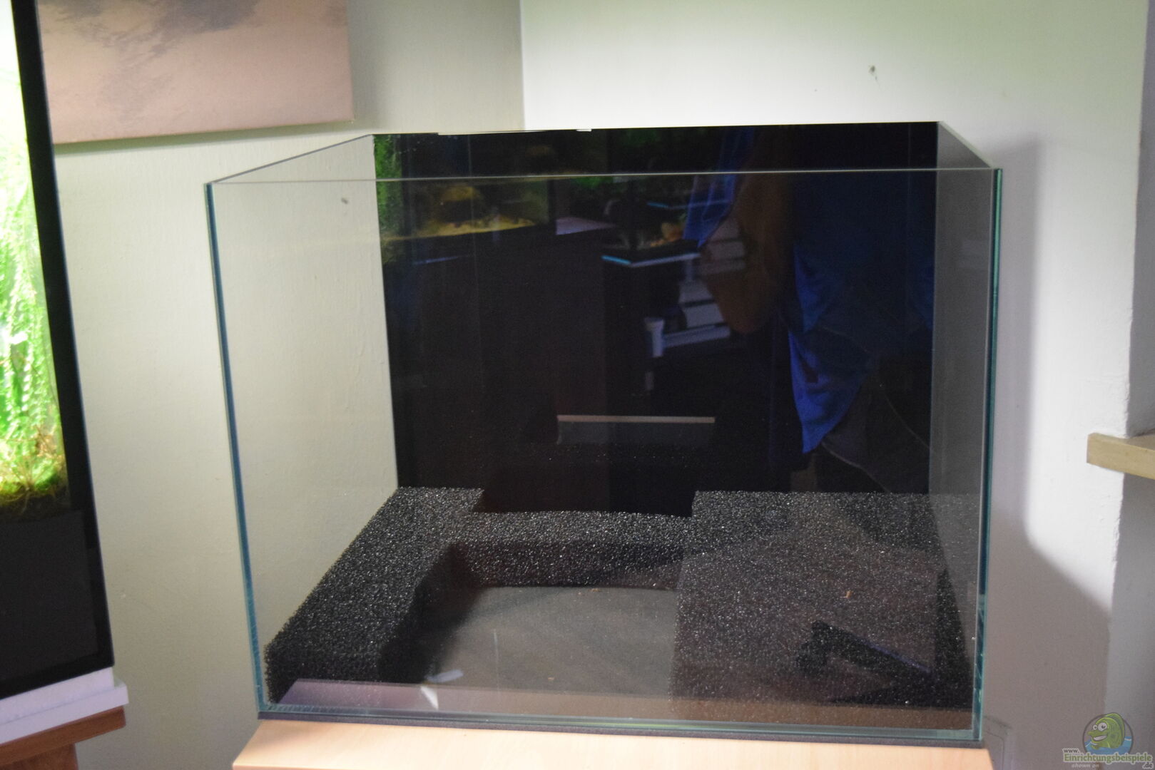 Es handelt sich um ein Weissglassbecken mit den Sonderma??en 60x45x45 cm. In der Mitte befindet sich ein kleiner angedeuter Bachlauf. Bei der Bepflanzung wurden Aquarienpflanzen verwendet und auf emerses Wachstum umgestellt.
