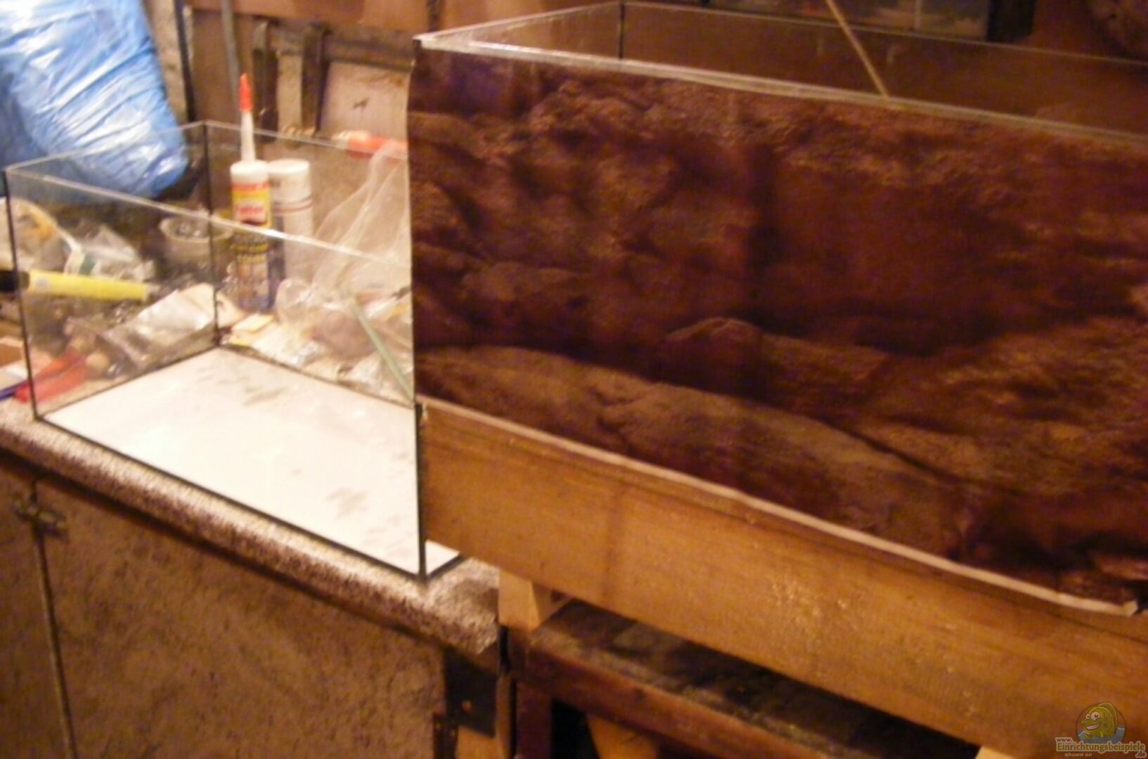 Zur Legende... zwei alte 60l-Becken sollten entsorgt werden, dienen jetzt für dieses Projekt. Dabei wird das Becken mit Flu??lauf(das Obere) um 25cm höher gestellt. Am Ende zum unteren Becken wird eine modellierte Kante geformt , die es ermöglicht, das gepumpte und auch gefilterte Wasser in breiter Form ins untere Becken fallen zu lassen. Desweiteren ein ´Gebirge´ bzw. Uferböschung an den Seiten des oberen Beckens instaliert wird , welches mit subalpinen Wasserpflanzen bestückt [...]