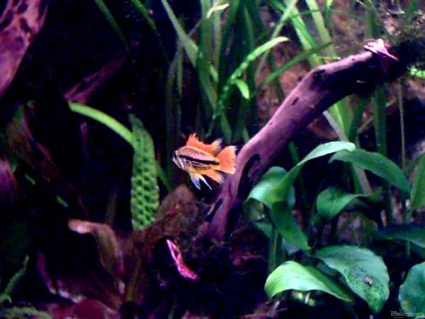 4 bepflanzte Wurzeln ( 3 x mit Javamoos, 1x mit Anubias Barteri, ) ------ Rückwand- Eigenbau mit einem Büschel Javamoos und Microsorum windelov bepflanzt. ------ Kokosnusshälfte mit Cryptocoryne crispaluta, Microsorum windelov und Javamoos bepflanzt . ------ 1 künstlicher Baumstumpf ------ 1 Kieselstein aus dem Kieswerk bepflanzt mit Javamoos. ------