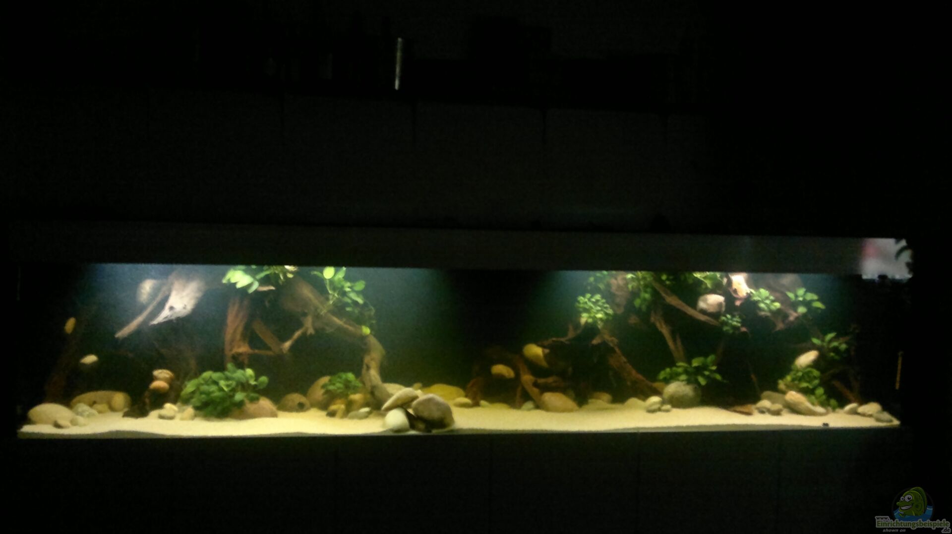 Nettoinhalt : 1200 L , 12 mm Glas, Bodenscheibe 2-teilig, Nähte am Boden mit Glasstreben verstärkt, Am oberen Beckenrand zusätzlich Glasstreben über die gesamte Beckenlänge. 2 breite Mittelstreben. Rückwand, Seitenscheiben + zwei 4-Kammer-Innenfilter vom Hersteller schwarz foliert. Dies erspart aufwändige Rückwandeinbauten u. ergibt eine brauchbare Tiefenwirkung. Hinten li./re. über der Wasseroberfläche je eine 40 mm - Bohrung, zum durchführen v. Kabeln. Die Führungsschienen [...]