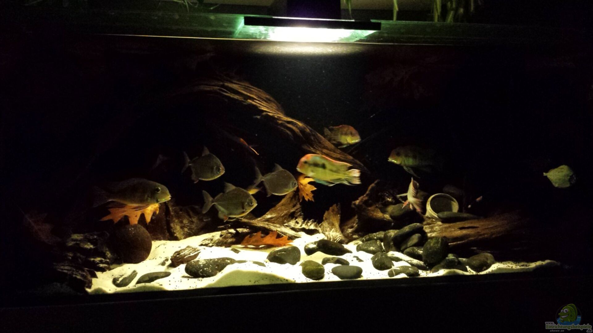 - Wulstverklebtes Aquarium mit breitem Mittelsteg, 10 mm Glasstärke - 4 angepasste Abdeckscheiben, hinten 2 x ca. 40 cm, vorn 2 x ca. 20 cm tief - Unterschrank angefertigt vom Metallbauer, feuerverzinktes Stahlgestell, Verkleidung mit Edelstahlplatten - Front mit vier Edelstahltüren; rechts gro??er Metallauszug zum Herausfahren des Topffilters