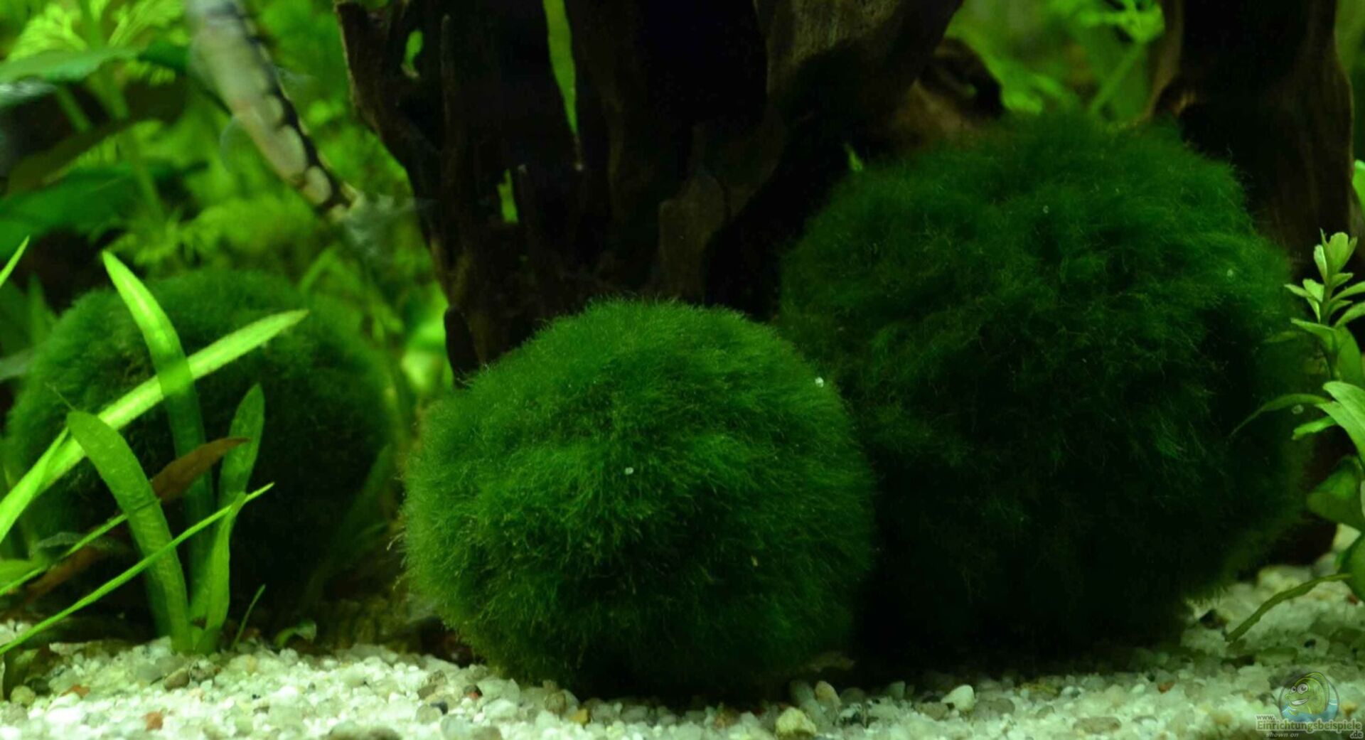 Hier findest du alle wichtigen Informationen zur Pflege und Beispiele für die Einrichtung deines Aquariums für Mooskugeln (Cladophora aegagrophila).