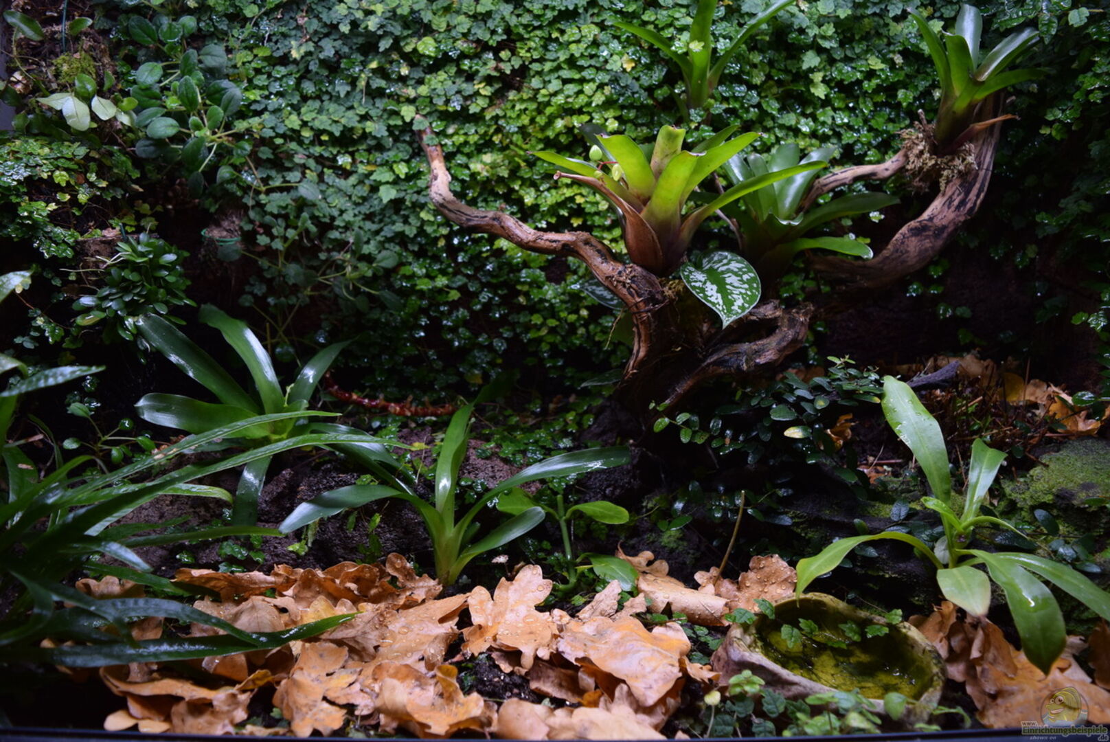 Die Rückwand besteht aus ca. 1-2 cm dicken Xaximstücken, die ich mit Aquariensilikon ans Glas geklebt hab. Zwischenräume wurden belassen. Diese hab ich anschliessend mit einem RFB-Substrat ausgefüllt. Das ist eine klebrige Masse aus Klebstoff und Torf, die einfach ans Glas gedrückt wird. Danach muss es ca. ne Woche trocken. Aus ihm wachsen mit der Zeit Moose und Farne.RFB-Substrat Xaxim (gesprochen Schaschim), ist der neuseeländische Baumfarn, den man in Scheiben geschnitten u.a. hier [...]