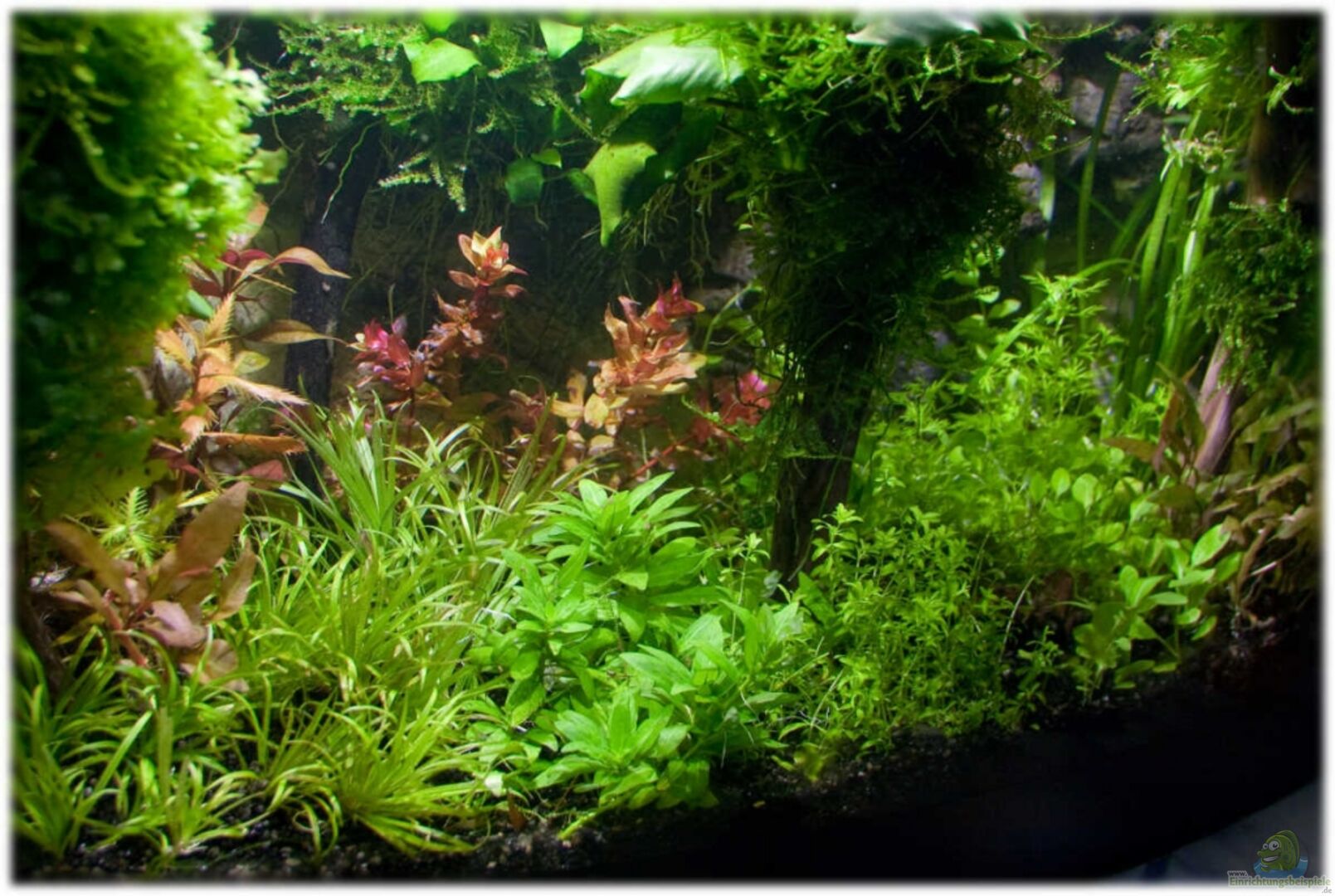 Es handelt sich hier um ein Standrdbecken mit gewölbter Front, gefertigt aus 4 mm Glas, verklebt mit schwarzem Silikon. In das Becken habe ich eine 3D-Rückwand in Stein/Wurzel-Optik eingeklebt, deren Tiefe im Becken beträgt 2 - 8 cm. Im oberen Bereich der Rückwand wurde eine kleine Pumpe eingeklebt, da der Raum hinter der Wand als Filter genutzt wird. Deshalb wurde die Rückwand einseitig mit Silikon verklebt, steht unten auf 2 Silikonstützen und ist oben an einer Stelle links fixiert. Links [...]