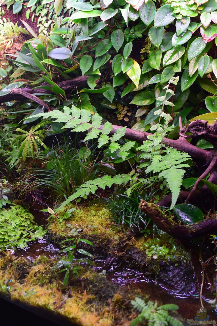 Da ich ja schon einmal versucht habe einen Bachlauf zu gestalten (siehe das Beispiel Bachlauf-Paludarium) und nicht ganz zufrieden war mit dem Ergebnis, wollte ich diesmal ein echten Bachlauf konstruieren. Das Ganze beruht auf dem Prinzip eines doppelten Bodens. Das Wasser wird mit Hilfe einer kleinen Zimmerbrunnenpumpe hochgepumpt und läuft mit Gefälle ca. 5 % von rechts nach links. Eine zurecht geschnittene Schaumstoffmatte filtert das Wasser auf der linken Seite, bevor es wieder hochgepumpt [...]