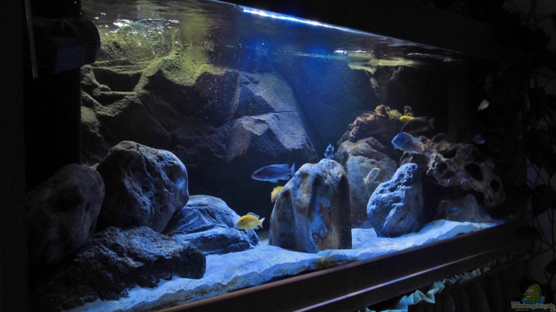 Standartbecken Abdeckung von Aquariumabdeckungen Runge selbst gebauter Unterschrank aus Y-tong Steinen und Arbeitsplatte in Buchenoptik
