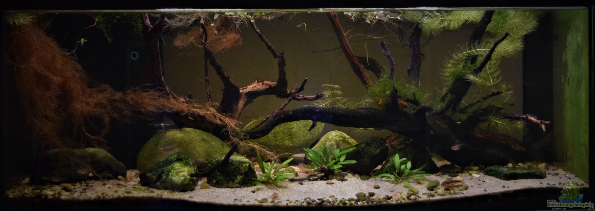 Sonderanfertigung von Aquarien und Terrarienbau Jebramek in Nürnberg. Der Wasserstand beträgt 35 cm. Ein mit Kabelbindern zusammen gebundenes Aluminium-Gestell befindet sich in der Abdeckung und fungiert als Decke, um darin Wurzeln anzubinden, die ebenso mit Kabelbindern zusammengehalten werden. Weiterhin hängen von der Decke künstlich erstellte Lianen. Sie wurden aus Paketschnur, Aquariensilion und einer Mischung aus gehäckselten Xaxim- und Weisstorf-Resten erstellt. Um das Ganze noch natürlicher [...]