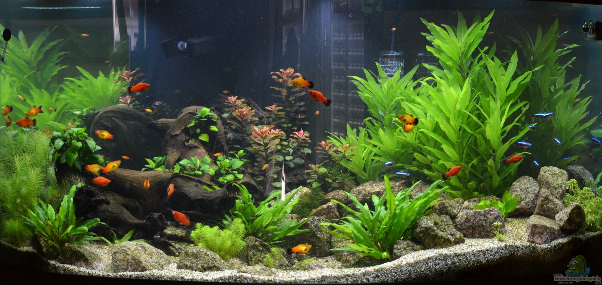 Nach einem Umzug hat das Becken jetzt seinen neuen Platz erhalten. Steine, Wurzeln und Kies wurden gewaschen und wieder verwendet. Der Filter wurde mitgenommen ohne ihn zu reinigen. Bodengrund wurde erneuert. Die Pflanzen wurden aussortiert und ca die hälfte mit genommen. Die Bewohner sind alle mit umgezogen.