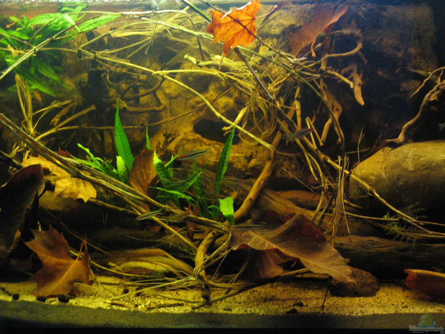 Fische: 10 Puntius denisonii Die Haltungsparameter werden im Allgemeinen folgenderma??en angegeben: Temperatur 15-26° C, PH 6, 5-7, 5, GH bis 20°, wobei ich die GH in dieser Höhe doch recht hoch finde. Ernährung: Omnivor, doch sollte der pflanzliche Anteil überwiegen Die Haltung gilt als nicht schwierig, allerdings sollen die Tiere zur Schreckhaftigkeit neigen. Die Schreckhaftigkeit hat sich bei mir allerdings sehr schnell gelegt. 21 botia striata Die Haltungsparameter werden [...]