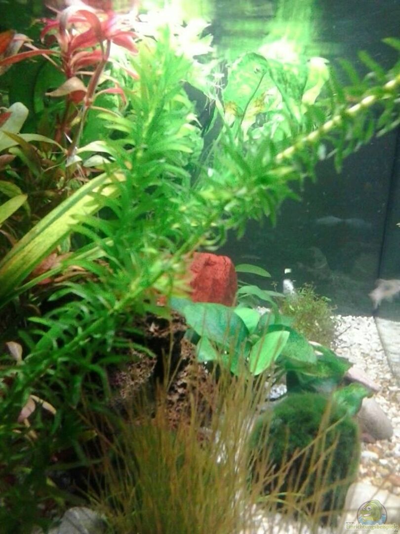 1x Anubias Nana - Zwergspeerblatt auf Lavalochgestein - ist mittlerweile riesengroß geworden 1x Cryptocoryne willisii - Kleiner Wasserkelch 3 x kleine Mooskugeln 1 x Anubias barteri var. caladifolia auf Wurzel 3 x kleine Anubias barteri aufgebunden auf Wurzel, auf Stein