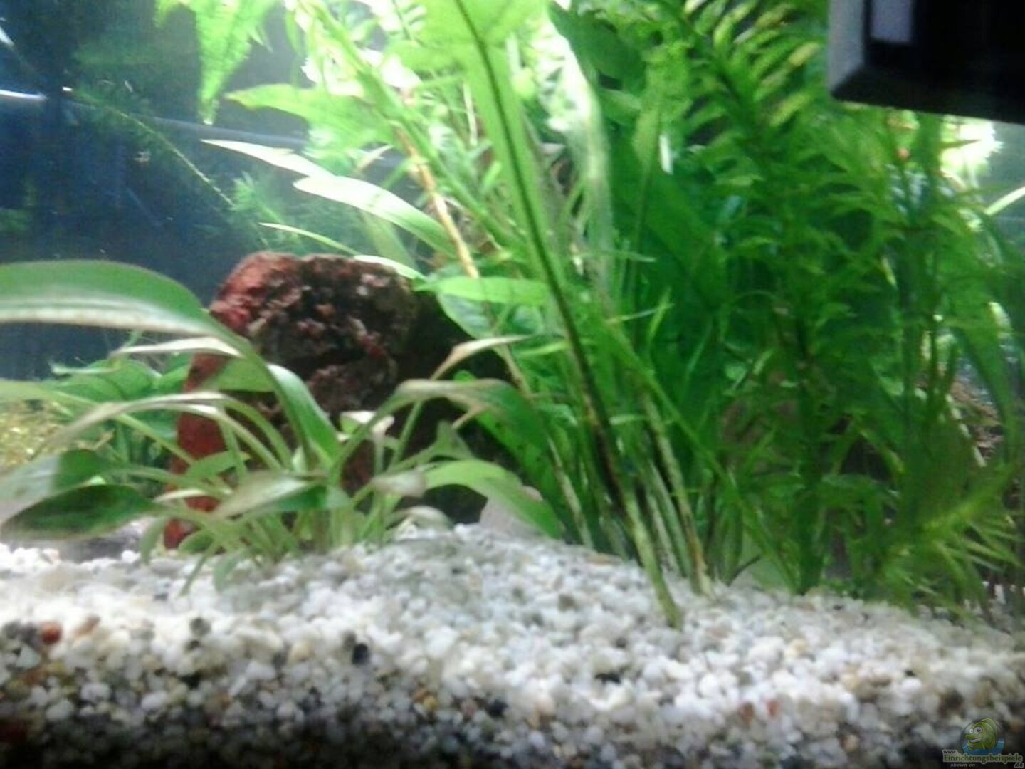 1x Anubias Nana - Zwergspeerblatt auf Lavalochgestein - ist mittlerweile riesengroß geworden 1x Cryptocoryne willisii - Kleiner Wasserkelch 3 x kleine Mooskugeln 1 x Anubias barteri var. caladifolia auf Wurzel 3 x kleine Anubias barteri aufgebunden auf Wurzel, auf Stein