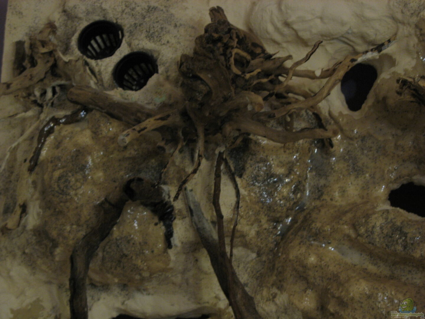 Rückwandmodule in beiger Farbe/Lehmoptik, div. Steine, Wurzeln etc. Markante ??ste: 1 gro??er abgestorbener trockener massiger Ast eines Apfelbaumes ohne Rinde, Durchmesser an der dicksten Stelle gute 18 cm. 1 gro??er trockener abgestorbener Ast einer Pappel, hier der Durchmesser ca. bei 6 cm. Ansonsten kleinere ??ste und Zweige von Eiche, Pappel, Buche Markante Steine: 1 gro??er flacher Naturfindling ca. 35 x 25 x 12 cm. Ansonsten grö??ere und kleinere Kiesel, Lavabrocken etc. Bau [...]