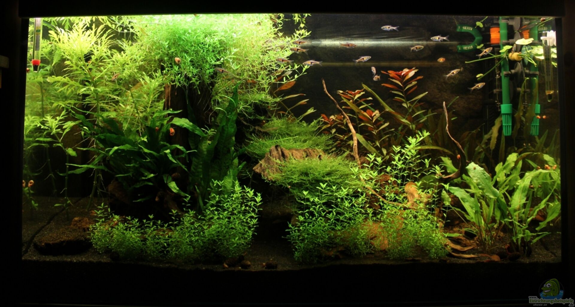 Das Aquarium steht in einem umgebauten und verstärktem IKEA IVAR Regal. Die Abdeckung musste mein Papa ;-) auch selbst bauen, weil zwischen dem AQ und den seitlichen Regalpfosten nur wenige Millimeter Abstand bleiben. Deswegen kann ich keine normalen Plastikabdeckungen nehmen, da diese seitlich breiter als das Becken sind. Allerdings sieht es einfach genial aus, wie das Becken perfekt ins Regal passt. Für die Abdeckung haben wir einen mit PVC-Platten beklebten Holzrahmen auf die Hintere und [...]