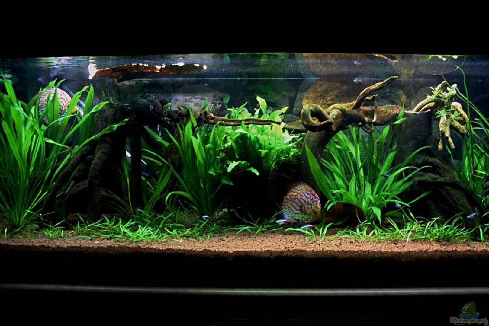 Das Untergestell besteht aus verschweisstem Vierkant-Stahlrohr (54 x 54 mm) und wurde in silbermatt pulverbeschichtet. Auf dem Gestell wurde eine 35mm Arbeitsplatte befestigt (von unten geschraubt). Es hat eine Höhe von 43 cm (incl. Arbeitsplatte). Die Oberkante des Aquariums liegt bei einer Höhe von ca. 95 cm. Das ist recht niedrig, aber für mich genau die richtige Höhe um Arbeiten im AQ verrichten zu können (bin selbst nicht so gross). Das Untergestell ist eine Eigen-Anfertigung von [...]