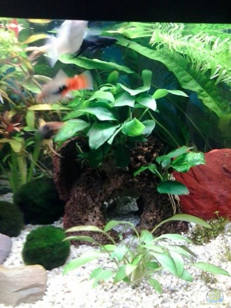 1x Anubias Nana - Zwergspeerblatt auf Lavalochgestein - ist mittlerweile riesengroß geworden 1x Cryptocoryne willisii - Kleiner Wasserkelch 3 x kleine Mooskugeln 1 x Anubias barteri var. caladifolia auf Wurzel 3 x kleine Anubias barteri aufgebunden auf Wurzel, auf Stein