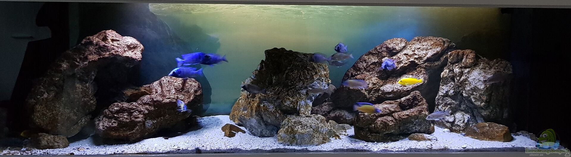 Diese Aquarium Kombi ist von der Firma Aquarium Wilhelmi, Dortmund. Unterschrank und Abdeckung in wei?? hochglanz. Das Becken besteht aus 12 mm Floatglas, sto??verklebt. Die Rückseite ist mit einer auf 4 mm Plexiglas aufgebrachten Fototapete bestückt. Durch diesen Hintergrund entsteht eine schöne Tiefenwirkung.