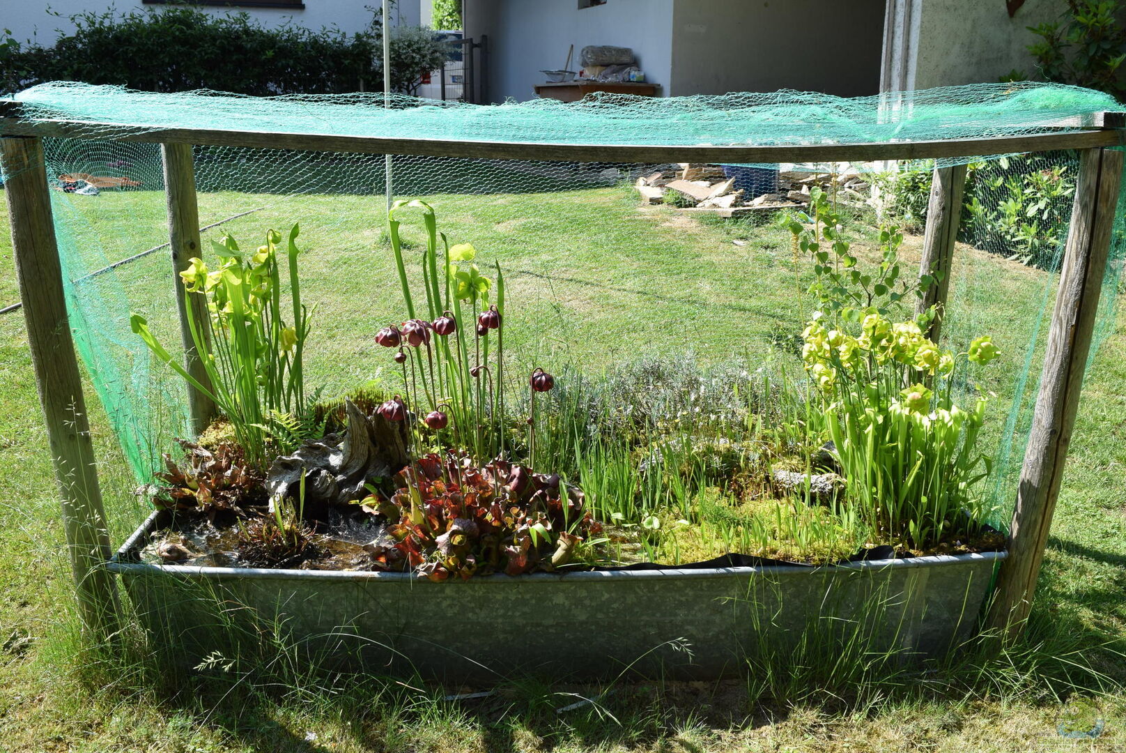 Das Moorbeet das ich hier vorstellen möchte, läuft seit 2014. Als Wasserspeicher in den heissen Sommermonaten dienen 2 umgedrehte 80cm im Durchmesser Blumenkübel aus Plastik. Ich hab diese mit mehreren grossen 1 cm grossen Löchern versehen, damit Wasser ein und austreten kann. Aufgefüllt wurde das Ganze mit wenig zersetzem Hochmoortorf, welches anschliessend mit Regenwasser aus der Tonne ca. 2 Wochen gewässert wird. Torf kann das siebenfache an Wasser aufnehmen, bis er endlich gesättigt [...]
