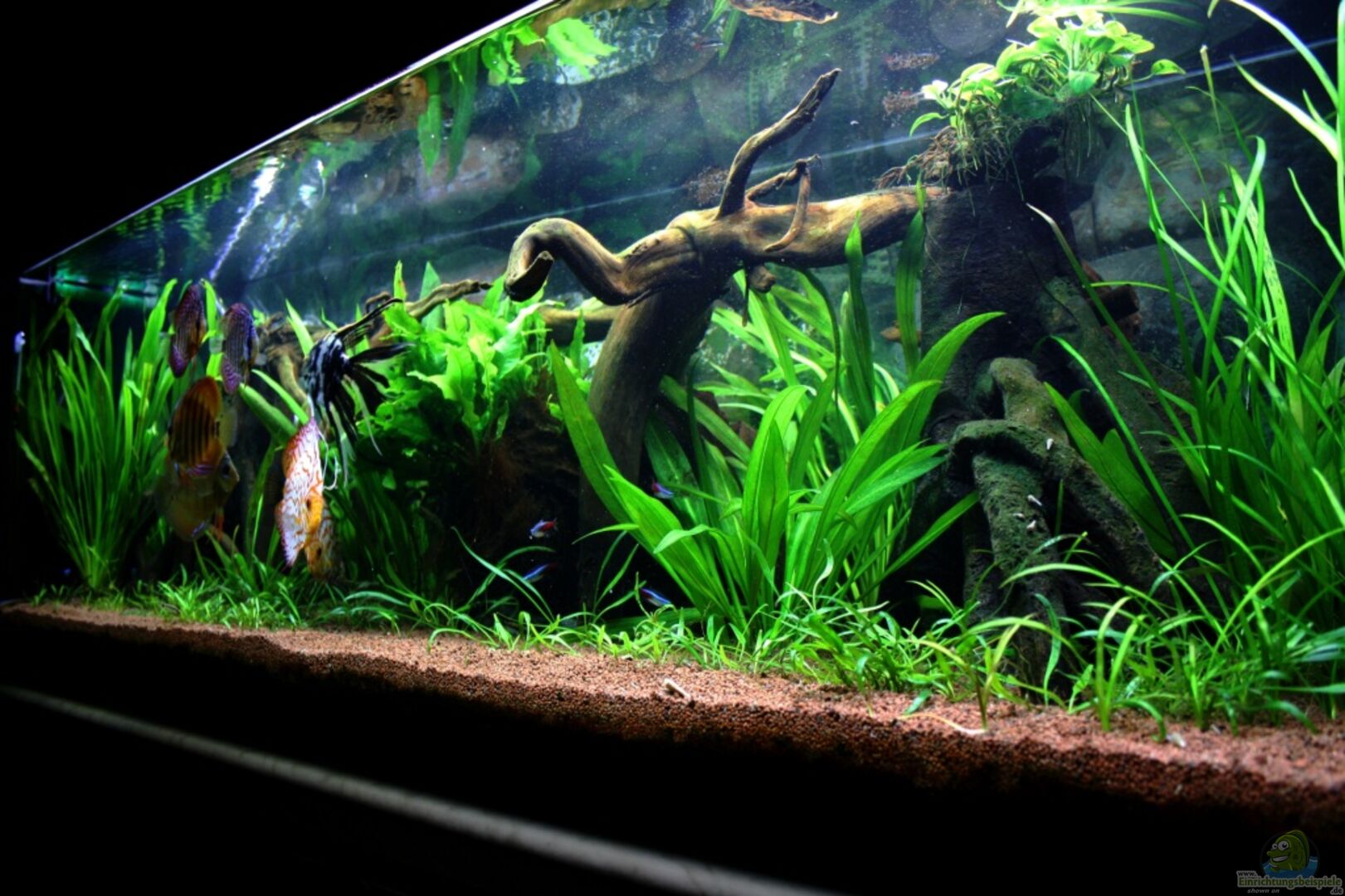 Das Untergestell besteht aus verschweisstem Vierkant-Stahlrohr (54 x 54 mm) und wurde in silbermatt pulverbeschichtet. Auf dem Gestell wurde eine 35mm Arbeitsplatte befestigt (von unten geschraubt). Es hat eine Höhe von 43 cm (incl. Arbeitsplatte). Die Oberkante des Aquariums liegt bei einer Höhe von ca. 95 cm. Das ist recht niedrig, aber für mich genau die richtige Höhe um Arbeiten im AQ verrichten zu können (bin selbst nicht so gross). Das Untergestell ist eine Eigen-Anfertigung von [...]