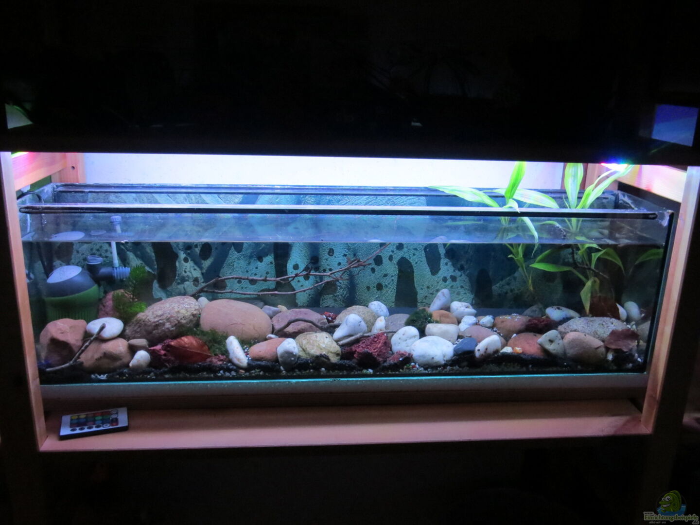 Dieses Aquarium soll einen Ausschnitt eines Gebirgsbaches auf Lantau Island in Hongkong darstellen. Das Biotop kann man sich hier anschauen.