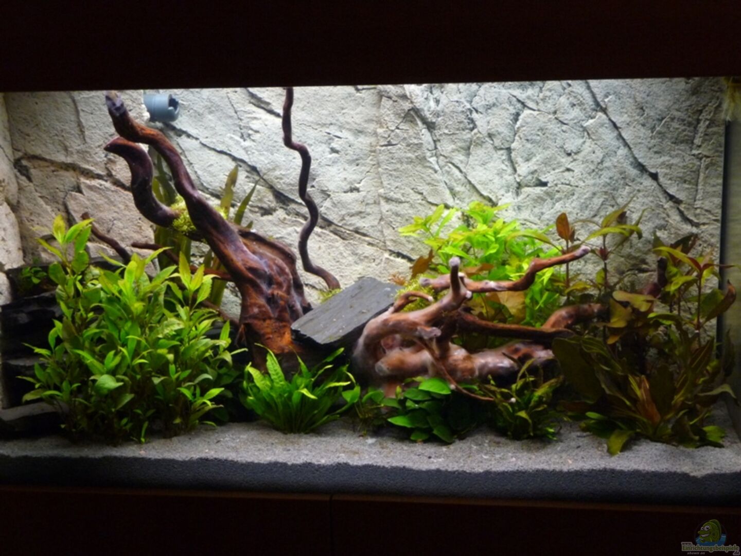Aquarium von Firma Aquarium West gebaut. 2 Bohrungen im Boden mit ablaufschacht (Technikraum) Rückwand Slim line Steingrau