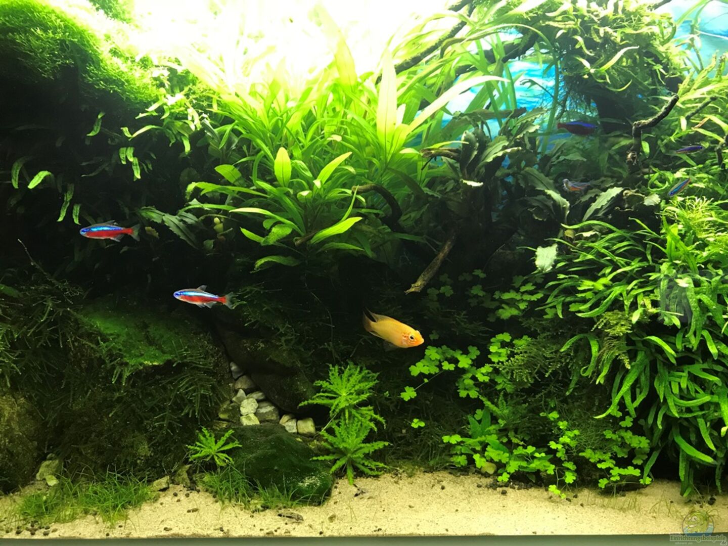 Ich habe mir ein Weissglas AQ zugelegt, da hier die Farben der Fische und Pflanzen noch besser "rüberkommen". Habe mir im Nachgang von meinem Schreiner noch einen neuen Unterschrank bauen lassen.