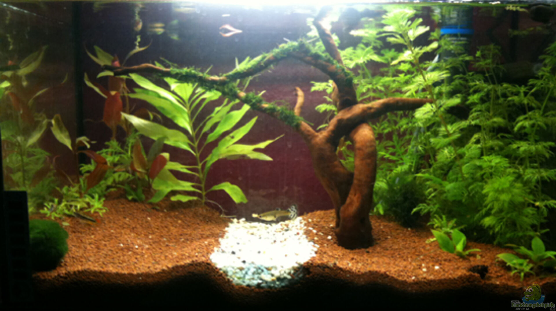 Da ich das Becken geschenkt bekommen habe, habe ich mich einfach mal aus spa??es mal an Aquascaping versucht ;) Ziel war es ein kleine Landschaft mit Stein und Baum und einem Weg zu erschaffen. Das Becken gehört eigentlich meiner kleinen Schwester und hat einige Umbauten miterlebt wie ihr auf den Bildern sehen könnt. Geplant ist das Becken in einigen Monaten in ein Nanoriff umzuwandeln.