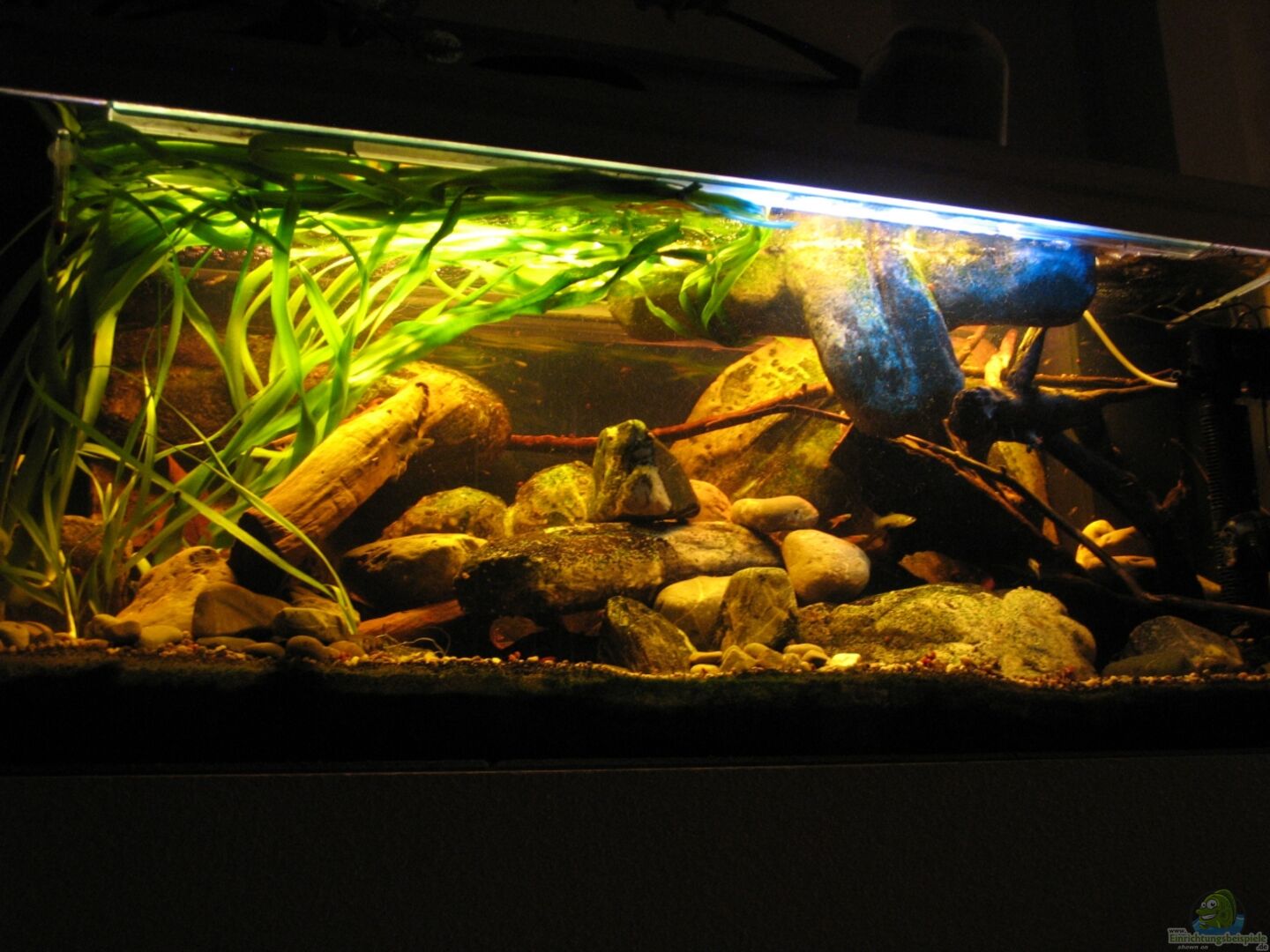 Das Becken läuft seit Juli 2006, das aktuelle Layout allerdings erst seit ca. 1, 5 Jahren Beckendaten: Standardbecken, Floatglas, stossverklebt mit schwarzem Silikon. Unterbau aus Y-Tong Steinen. Als Auflage eine 27 mm Spanplatte. Darauf liegt als Druckausgleich eine passend zugeschnittene Campingmatte. Das ganze Gebilde wurde anschlie??end verkleidet mit Sperrholz Pappel und mit wei??er Rauhfasertapete tapeziert. Auf der linken Seite des Beckens steht eine Säule aus Spanplatten, die ebenfalls [...]