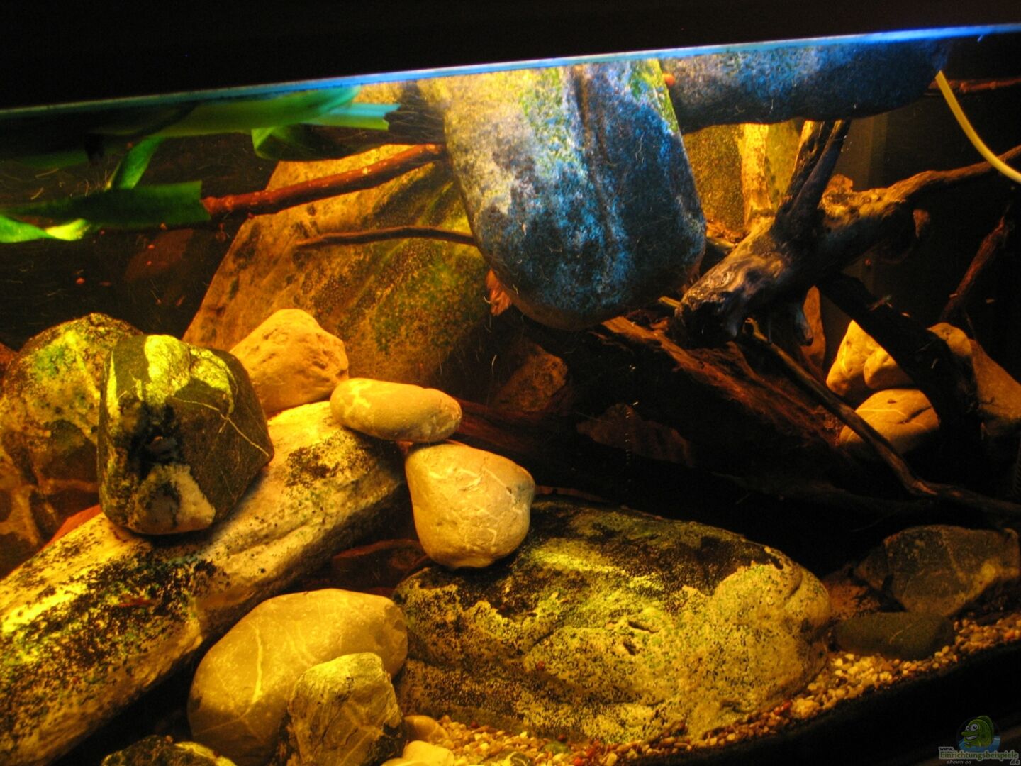Das Becken läuft seit Juli 2006, das aktuelle Layout allerdings erst seit ca. 1, 5 Jahren Beckendaten: Standardbecken, Floatglas, stossverklebt mit schwarzem Silikon. Unterbau aus Y-Tong Steinen. Als Auflage eine 27 mm Spanplatte. Darauf liegt als Druckausgleich eine passend zugeschnittene Campingmatte. Das ganze Gebilde wurde anschlie??end verkleidet mit Sperrholz Pappel und mit wei??er Rauhfasertapete tapeziert. Auf der linken Seite des Beckens steht eine Säule aus Spanplatten, die ebenfalls [...]