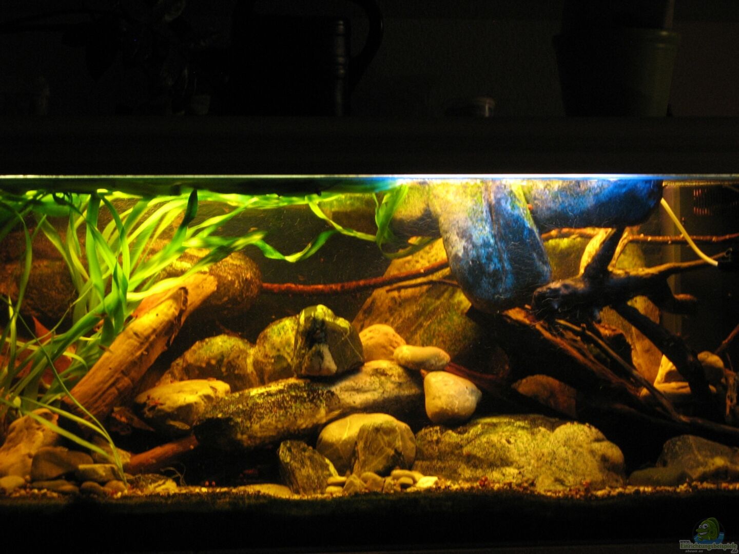 Das Becken läuft seit Juli 2006, das aktuelle Layout allerdings erst seit ca. 1, 5 Jahren Beckendaten: Standardbecken, Floatglas, stossverklebt mit schwarzem Silikon. Unterbau aus Y-Tong Steinen. Als Auflage eine 27 mm Spanplatte. Darauf liegt als Druckausgleich eine passend zugeschnittene Campingmatte. Das ganze Gebilde wurde anschlie??end verkleidet mit Sperrholz Pappel und mit wei??er Rauhfasertapete tapeziert. Auf der linken Seite des Beckens steht eine Säule aus Spanplatten, die ebenfalls [...]