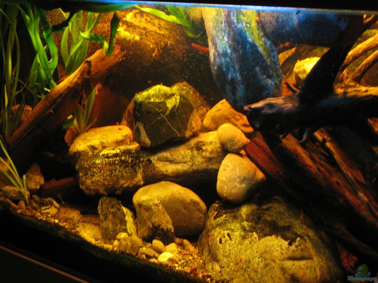 Das Becken läuft seit Juli 2006, das aktuelle Layout allerdings erst seit ca. 1, 5 Jahren Beckendaten: Standardbecken, Floatglas, stossverklebt mit schwarzem Silikon. Unterbau aus Y-Tong Steinen. Als Auflage eine 27 mm Spanplatte. Darauf liegt als Druckausgleich eine passend zugeschnittene Campingmatte. Das ganze Gebilde wurde anschlie??end verkleidet mit Sperrholz Pappel und mit wei??er Rauhfasertapete tapeziert. Auf der linken Seite des Beckens steht eine Säule aus Spanplatten, die ebenfalls [...]