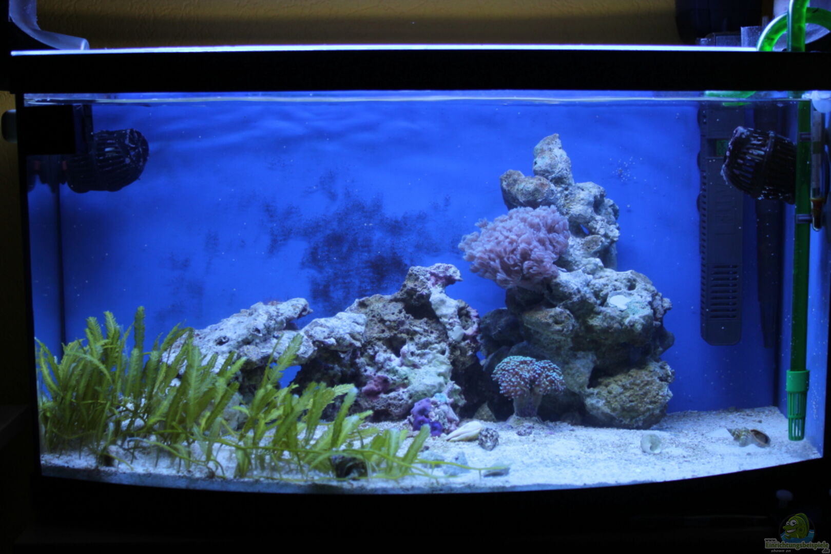- Becken mit gebogener Frontscheibe, deshalb die unterschiedlichen Breiteangaben. - Die Rückwand und die rechte Seitenscheibe ist mit einer dunkelblauen Folie beklebt worden. - Plexigla??bodenplatte zum Schutz vor Gla??bruch - Plexigla??abdeckscheibe